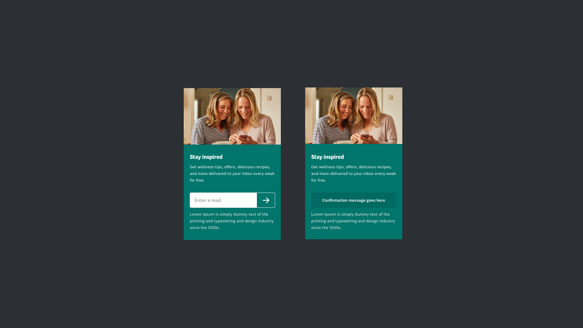 Adding clear feedback states that confirm the subscription such as placement for disclaimer text (GDPR notices find a home here).